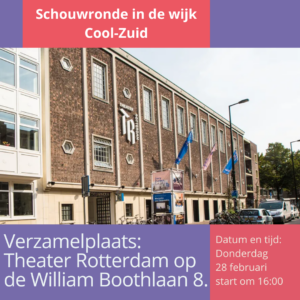 We verzamelen voor Theater Rotterdam op de William Boothlaan 8.